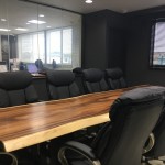 某不動産社屋の増築工事。昨年、美容室から用途変更した物件ですが、業務拡張に伴って二階を増築しました。二階は業務スペースが中心となるため、仕事のしやすさを考えました。法規の兼ね合いもあり、業務室は少しの壁で区切りながら一体感のあるスペースとしました。休憩室は、社員が子供を連れてきた際にも活用出来るようにしました。会議室も兼ねる社長室は、グラフィッククロス、プライバシーも配慮できる調光ガラス、社長自らが探したモンキーポットの無垢のテーブル、と見所満載です。
